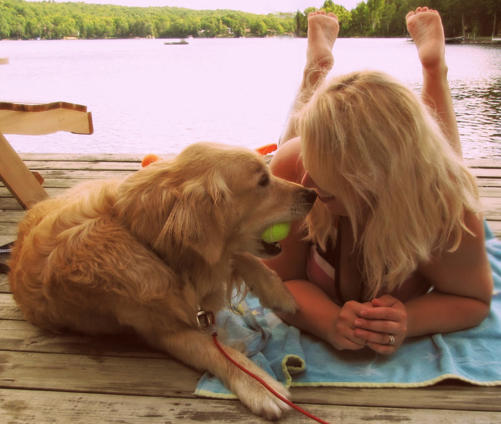 | Sunning on the dock with Genevieve. |