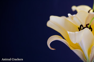 A close-up of one of the Lilies. Photographing flowers is so easy! Since they’re so small, coloured bristol board is the perfect backdrop. Pick out the flower you want to photograph and put it in a tall cup or vase. Put the bristol board about a foot behind the flower, set up your tripod and your all set!